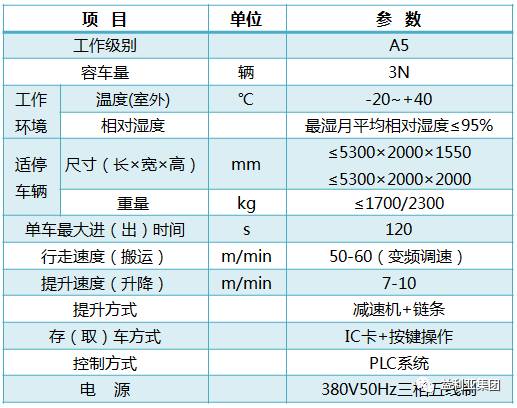 二層智能立體車庫主要性能參數表