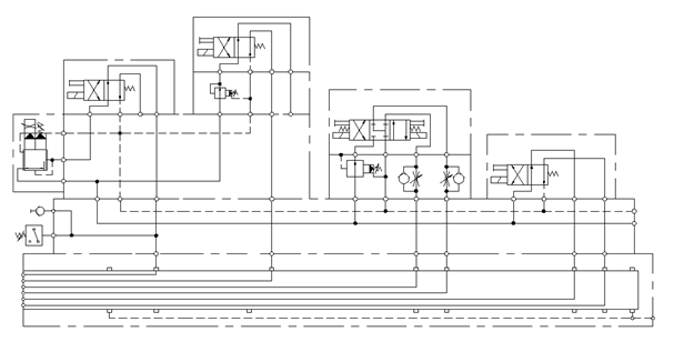車絲機(jī)床專用液壓分配器閥組,實(shí)現(xiàn)翻轉(zhuǎn)卡盤的夾緊、松開(kāi)、180度翻轉(zhuǎn)、鎖緊、松開(kāi)等,卡盤的夾緊可實(shí)現(xiàn)壓力控制。