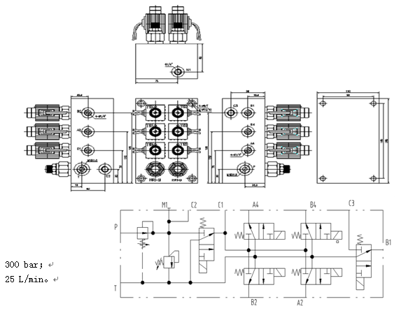 縮臂插裝車先導控制閥組,用于液控系統油源穩壓,機構動作使能,調平機構補油及力矩